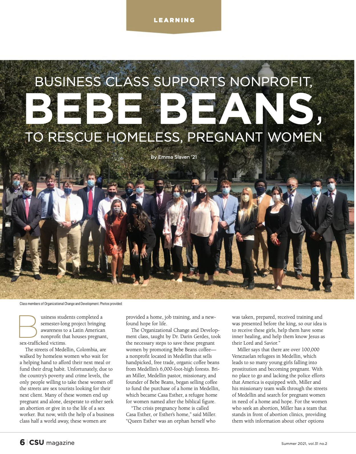For this project, we were asked to write several articles for Charleston Southern University's semi-annual magazine. Our writers interviewed and researched the assigned topics, and our articles were posted on CSU's online newsroom as well as their physical magazine that spring. Our representation of our local nonprofit story even made the news that week, increasing sales for the nonprofit to support pregnant refugee women in Medellin, Colombia.
